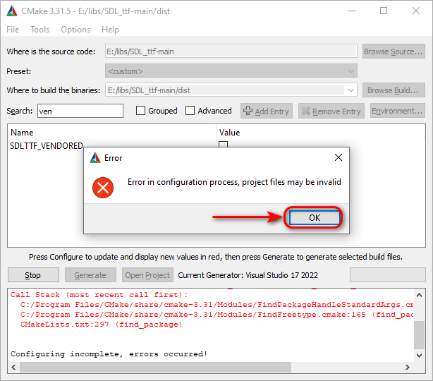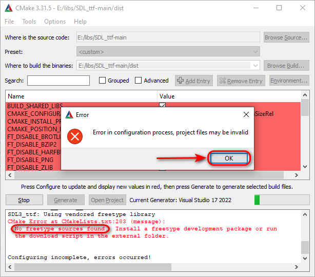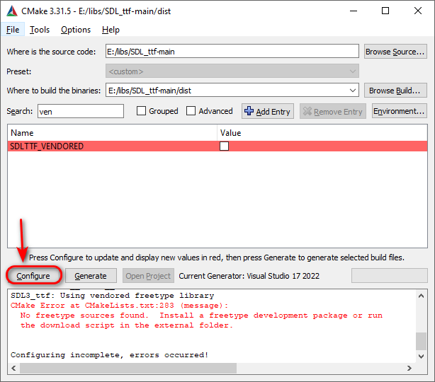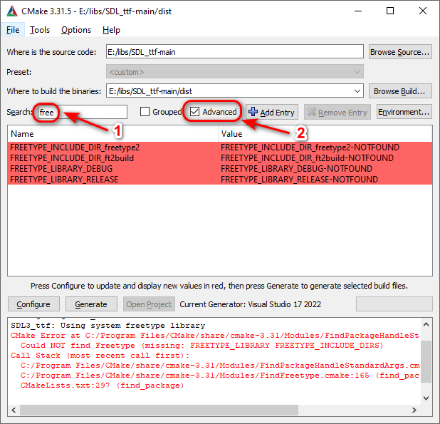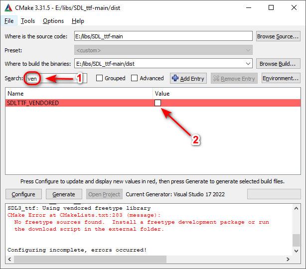 How to install SDL_ttf 3.1.0 using CMake and Visual Studio 2022 for Desktop
