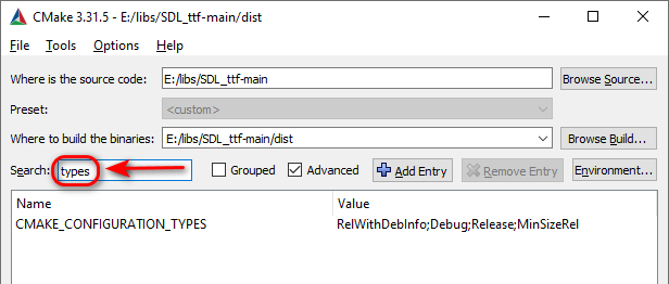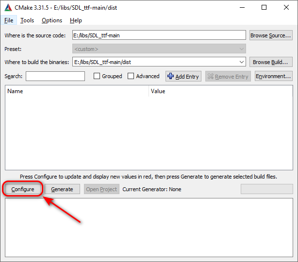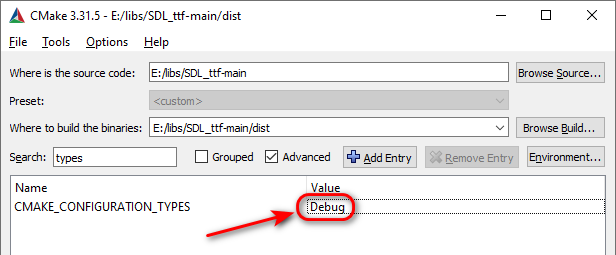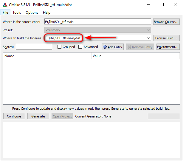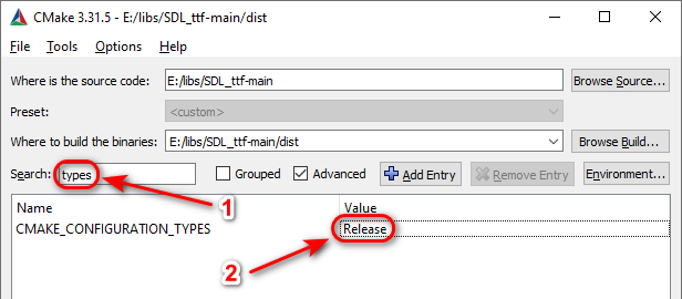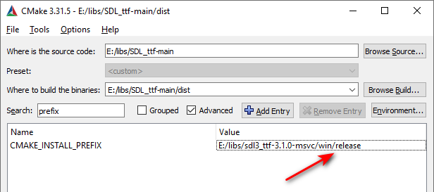 - Change the "CMAKE_INSTALL_PREFIX" value to "release":