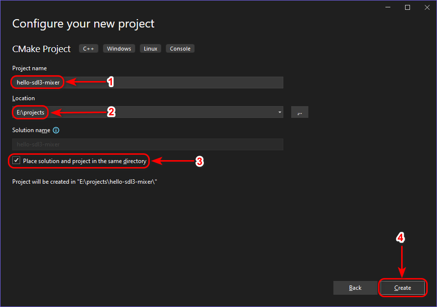 - Install SDL_mixer using this guide: How to install SDL_mixer 3.1.0 using CMake and Visual Studio 2022 for Desktop